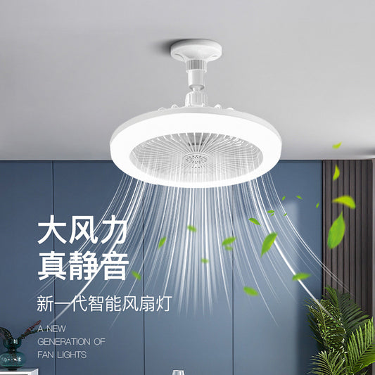 New led fan light white light E27 screw mouth home living room three-color ceiling fan light remote control bedroom fan light